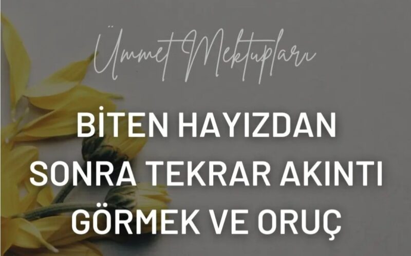Mektuplar Biten Hayızdan Sonra Tekrar Akıntı Görmek Ve Oruç Mayıs 20, 2022 Soru Selamun aleyküm hocam. Arkadaşımın adet günü 6 gün sürüyormuş…